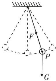 (图中为一个小球P被绳子拉着摆动,受到竖直向下的重力G,绳子拉力F)