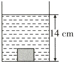 16. 如图所示,有一圆柱形容器,放在水平桌面上. 现将一体积为2×10⁻⁴ m³、质量为0.54 kg的长方体金属块放在容器底部,再向容器中加水至14 cm深时,水对容器底的压强是_______ Pa,金属块对容器底部的压力是_______ N.(金属块与容器底部不是紧密接触,ρ水 = 1.0×10³ kg/m³,g取10 N/kg)