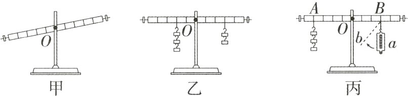 (3)如图丙所示,在A点悬挂3个钩码,在B点用弹簧测力计竖直向下拉,使杠杆在水平位置再次平衡,则拉力大小为________ N. 若保持杠杆平衡状态不变,将弹簧测力计由a方向缓慢转动到b方向的过程中,其示数将________(选填“变大”“变小”或“不变”).