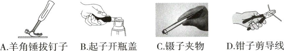1. 下列情境中的杠杆属于费力杠杆的是 ( )