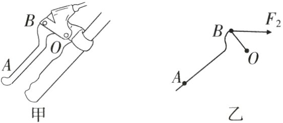 6.如图甲是自行车的手闸,其中ABO部分可视为一个杠杆,其简化示意图如图乙,O为支点,F₂为阻力,请在图乙中画出: