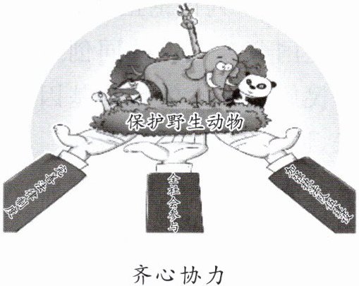 5. 下图《齐心协力》是《中华人民共和国野生动物保护法》相关宣传漫画。从传承中华优秀传统文化的角度,漫画启示我们 ( )