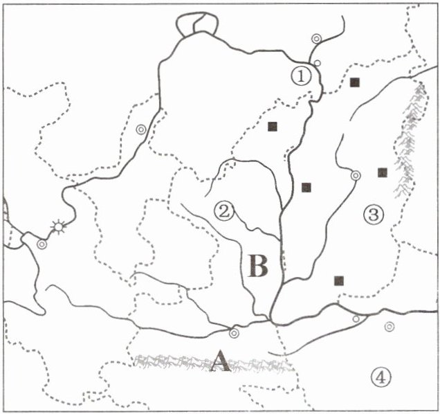 (1)山脉A________与________(填河流)构成了北方地区与南方地区的分界线。B河流经内蒙古高原之后的地形区是______和______。