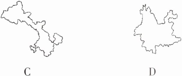 8.下列省级行政区域单位轮廓图中,全部位于我国北方地区的是( )