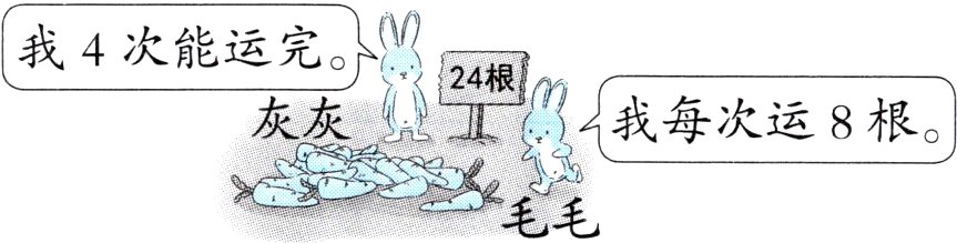 (1)毛毛运完需要几次? (2)灰灰每次运几根?