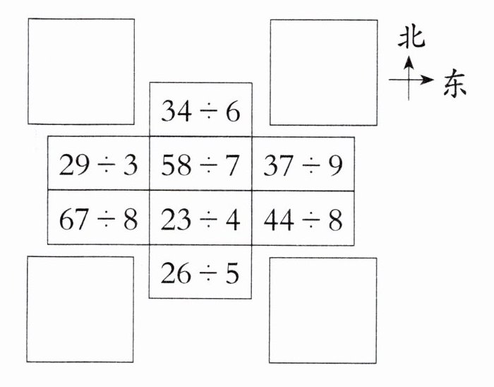 余3的填在东南方向的框中。