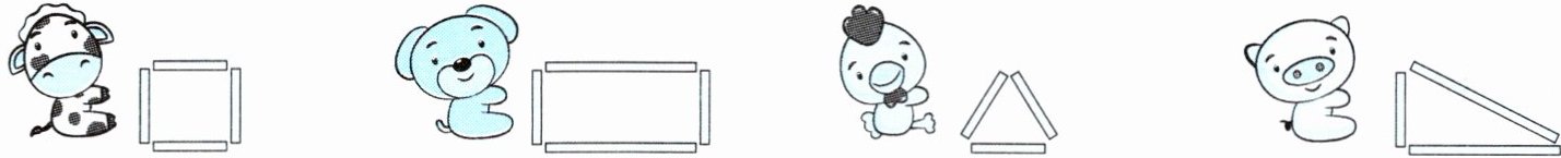 2.(趣味体验)用哪组小棒才能围成它们的图形?连一连。