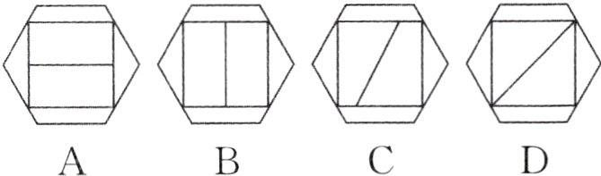 (2)为弘扬中华民族优秀传统文化,同学们在学校劳技课上认识和制作灯笼。小新做了一个灯笼,它的底部框架如上图所示。如果想再加一根木条使框架更牢固,下面方法最好的是( )。