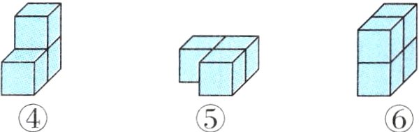 (2) 用4个正方体搭一搭,使从正面看到的形状与⑤相同。下面哪个符合要求?圈起来。
