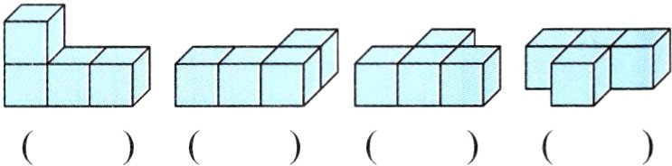 (2)冬冬玩搭积木游戏,他用4个相同的正方体搭成一个立体图形。从正面和左面看到的形状都是 ,从上面看到的形状是( )。