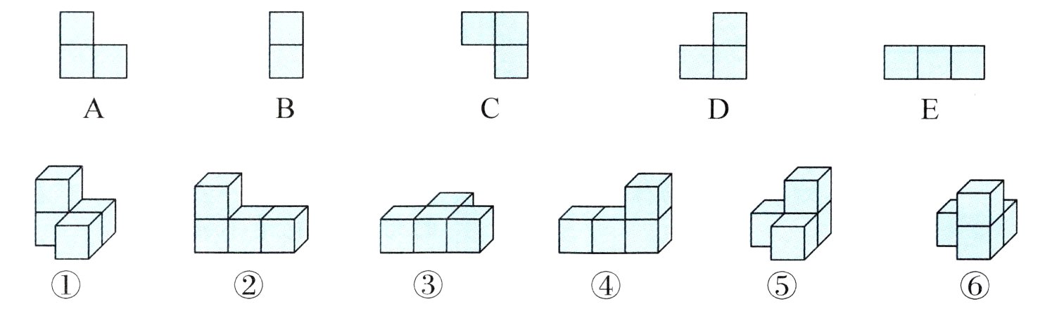 (5)从正面和右面看到的形状都是图D的立体图形有( )。