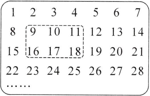 (2)如果围起来的六个数中左上角的数是$x$,这六个数的和等于429,则可以列出方程( )。