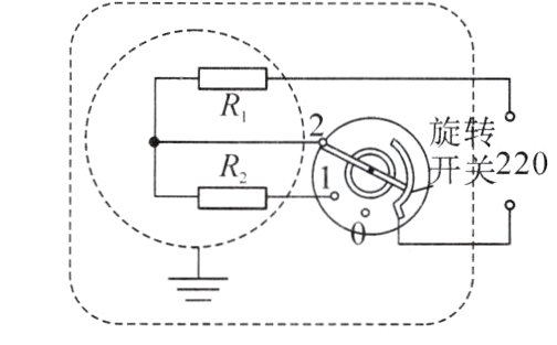 (2)由图可知,电烤箱开关接1时,电热丝R1、R2串联,电路电阻较大,此时电烤箱处于低温挡,由P = $\frac{U^{2}}{R}$得,此时电路的总电阻:R串 = $\frac{U^{2}}{P_{低温}}$ = $\frac{(220V)^{2}}{400W}$ = 121Ω,根据串联电路的总电阻等于各串联电阻之和,所以R1的阻值:R1 = R串 - R2 = 121Ω - 72.6Ω = 48.4Ω。