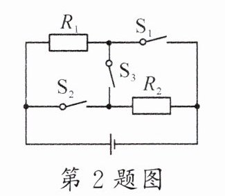 2.如图所示,当只闭合S₃时,电阻R₁的电功率P₁ = 4W,R₁两端电压为U₁,R₂消耗的电功率为P₂;当只闭合S₁、S₂时,电阻R₁的电功率P₁' = 9W,此时R₁两端电压为U₁',R₂消耗的电功率为P₂'。则下列选项错误的是( )