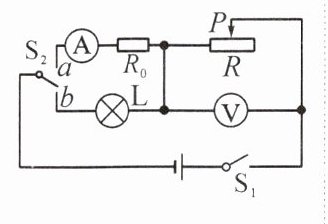 (1)当S₁闭合、S₂接b时,灯泡L与滑动变阻器R串联,电压表测R两端的电压。根据串联电路中各处的电流相等,且灯泡正常发光,由P = UI可得,电路中的电流:I = $\frac{P_{L}}{U_{L}}$ = $\frac{1.2W}{3V}$ = 0.4A。根据串联电路中总电压等于各分电压之和,滑动变阻器两端的电压:U₁ = U - U₁ = 5V - 3V = 2V。由I = $\frac{U}{R}$可得,滑动变阻器接入电路的阻值:R = $\frac{U_{R}}{I}$ = $\frac{2V}{0.4A}$ = 5Ω。