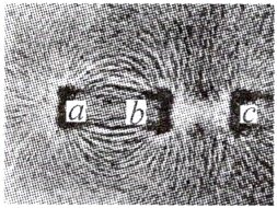 7. 如图是研究磁体周围磁场时的铁屑分布情况。实验时,a、b、c三个位置所对应的磁极可能是( )