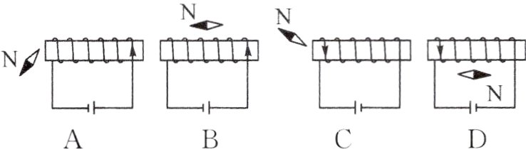 4. 下列各图中,小磁针静止时N极指向正确的是( )