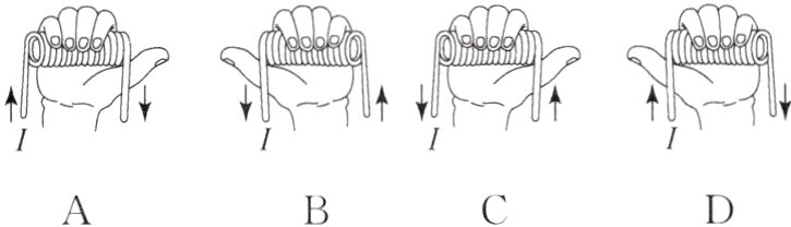 3. 如图所示,为四位同学判断通电螺线管极性时的做法,正确的是( )