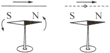 12. 如图所示,在观察奥斯特实验时,小明注意到置于通电直导线下方小磁针的N极向纸内偏转。小明由此推测:若电子沿着水平方向平行地飞过磁针上方时,小磁针也将发生偏转,请你说出小明推测的依据是__________________,你认为磁针的N极会向________(选填“纸内”或“纸外”)偏转。