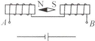 12.为了使放置在两通电螺线管中间的小磁针能在图中所示的位置停下来,请将电磁铁的线圈和电源连接起来。