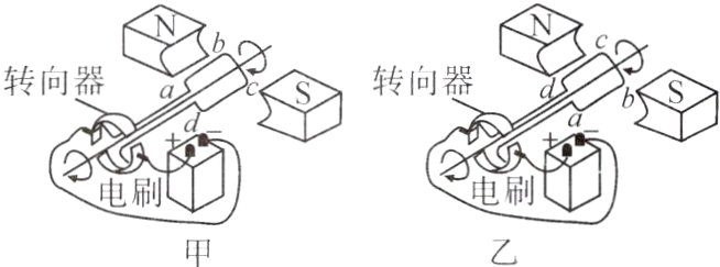 2. 线圈abcd转动过程中经过如图甲、乙所示位置时,导线ab所受磁场力的方向( )