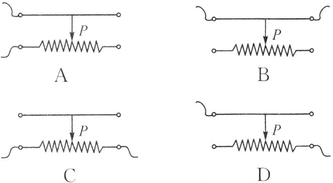 12. 如图是滑动变阻器的结构和连入电路的示意图,当滑片P向右滑动时,连入电路的电阻变小的是( )