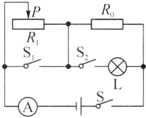 11. 如图所示电路,电源电压恒定,R₀是定值电阻,小灯泡L标有“6V 3W”,滑动变阻器R₁的最大阻值为20Ω。三个开关均闭合时,小灯泡恰好正常发光,电流表示数为1.5A。