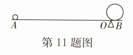11. 传统文化 “四两拨千斤”最早见于王宗岳的《太极拳论》一文,是“以小力胜大力”的意思.在学过杠杆知识后,小明认为利用杠杆也可以实现“四两拨千斤”,他设计的可行性原理图如图所示,若小球的质量为200 g,大球的质量为500 kg,若想让杠杆在水平位置平衡,则OA:OB = _______.