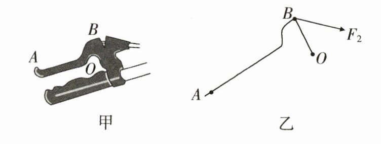 15. (5分)(2024·无锡外国语学校一模)图甲是自行车的刹车手闸,其中ABO部分可视为杠杆,其简化示意图如图乙所示,O为支点,F₂为阻力.请在图乙中画出: