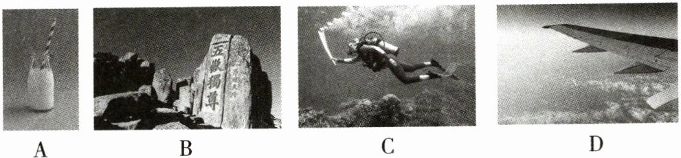 C [解析]用吸管喝牛奶利用了大气压强,A 正确;大气压强随海拔高度的增加而减小,故泰山山顶的大气压强比山脚下的小,B 正确;潜水员在水中上升过程中,深度越来越小,所以受到的压强越来越小,C 错误;飞机机翼是利用气体流速大压强小的原理设计的,D 正确.