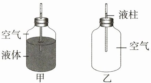 15. 科学实践如图甲所示是某同学自制的一个简易气压计,在温度相同的情况下,大气压越大,甲中玻璃管内的液柱高度就越________(选填“高”或“低”);如图乙所示是该同学自制的一个简易温度计,在大气压相同的情况下,温度升高,乙中玻璃管内的液柱________(选填“升高”或“降低”).