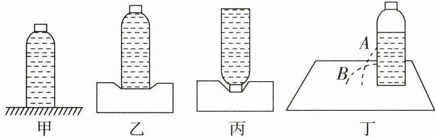 (2)将装满水的塑料瓶先后正放、倒放在相同的海绵上,如图乙、丙所示,塑料瓶对海绵的压力F₍正₎________F₍倒₎(选填“>”“<”或“=”),观察到海绵形变程度不同,说明压力的作用效果与________有关.
