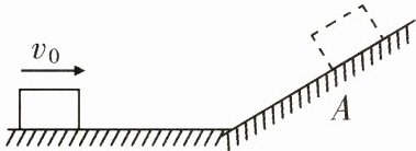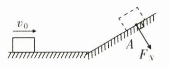 19.(2分)如图所示,一个木块在光滑水平面上以速度v₀做匀速直线运动,冲上粗糙斜面后最终静止在A点,请画出在A点时木块对斜面的压力Fₙ.