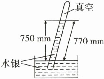(1)由图可知,玻璃管内水银面到水银槽中水银面的垂直高度为750 mm,此时的大气压强等于750 mm高水银柱产生的压强,小于标准大气压.