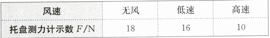 [设计与进行实验]如图乙所示,小媛自制了一个上凸下平的模型,将其固定在托盘测力计上,在模型的正前方用电风扇迎面吹风,模拟气流,进行实验验证. 打开电风扇,调整气流速度,读出托盘测力计的示数,将数据记录在下表中.