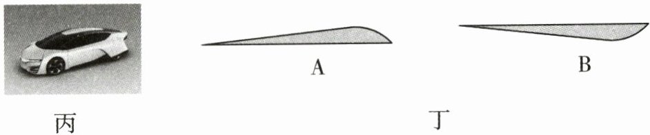 [拓展应用]如图丙所示是一款新型电动汽车,汽车的外形也是上凸下平,当一辆该汽车在平直的公路上飞快匀速行驶时,它对地面的压力________(选填“大于”“小于”或“等于”)它的重力. 为了让汽车在高速行驶时对地面的压力更大,提高车轮的抓地性能,在汽车的尾部装有气流偏导器,应选择偏导器横截面的形状是图丁中的________.