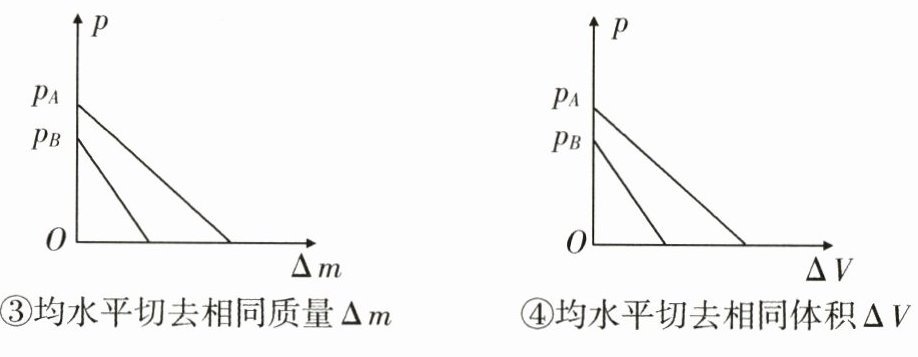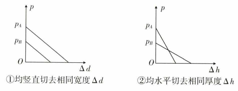 2.(2024·泉州丰泽期末)如图所示,工厂内两质量分布均匀、体积相等的实心圆柱体A、B静止在水平地面上,它们对水平地面的压强pA>pB,现采取以下方案对其切割,则剩余部分对地面压强的变化图像正确的是 ( )