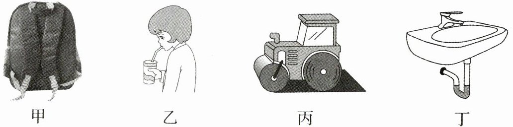 A. 图甲中:小明的书包背带比较宽,这样可以减小对肩部的压力
