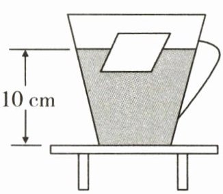 (2)饮料、杯子和冰块的总质量m总 = 0.4 kg + 0.02 kg = 0.42 kg,杯子对桌面的压力F' = G总 = m总g = 0.42 kg×10 N/kg = 4.2 N,杯子对桌面的压强p' = $\frac{F'}{S}$ = $\frac{4.2 N}{2×10⁻³ m²}$ = 2100 Pa.