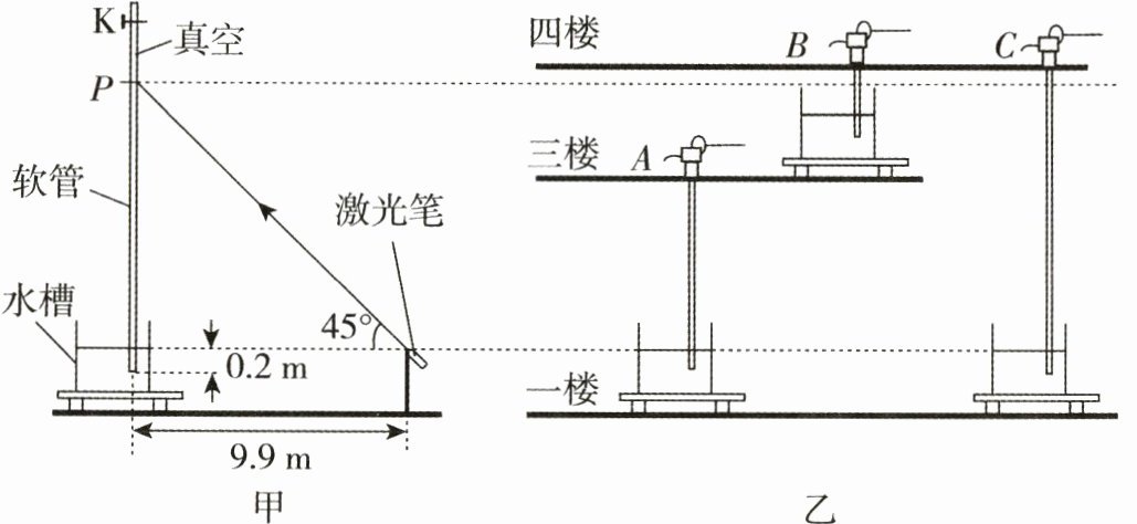 (2)已知四楼与三楼高度相差 3 m,如图乙所示,两位小伙伴继续重温经典的物理实验,他们在不同楼层安装了水槽和活塞式抽水机,能抽出水的有哪些抽水机?答:_______(填字母)抽水机。