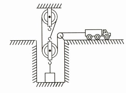 20.(12分)如图所示是一辆汽车通过滑轮组将深井中的物体拉至井口 的装置图,已知井深为12 m,物体质量为600 kg,汽车匀速拉绳子时 的拉力为2 200 N,g取10 N/kg.求: