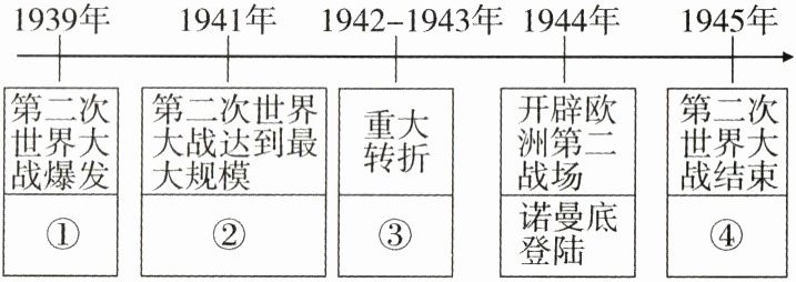 B [解析]根据材料中关键信息“1942年7月开始”“苏德两军”“1943年2月德军投降”可知,这场战役指的是斯大林格勒保卫战,它是第二次世界大战的转折点。故选B。