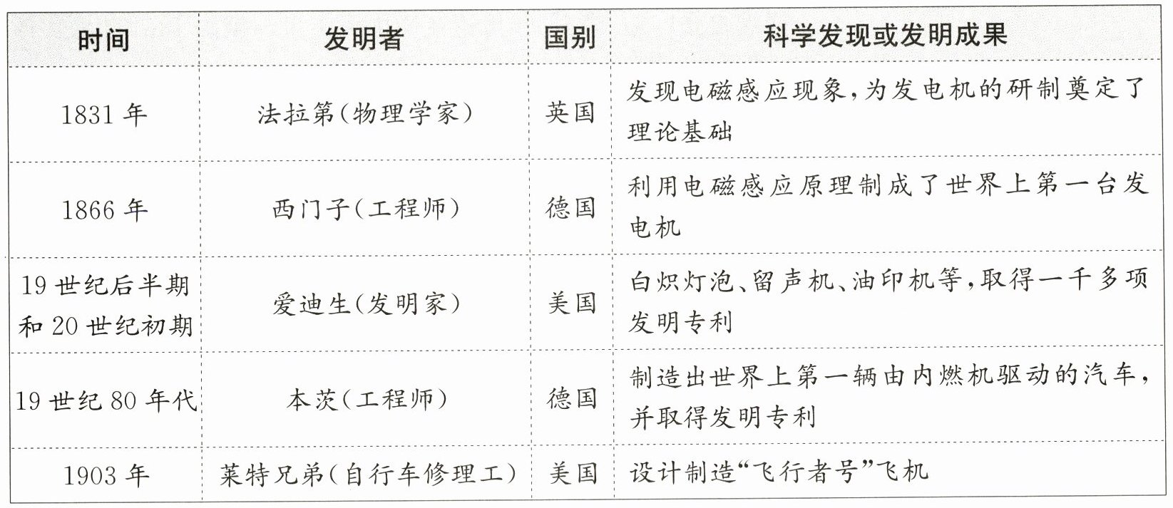 材料一 下面是第二次工业革命重要成果表(部分)。