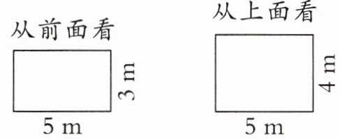 2. 一个长方体木箱,从前面看和从上面看到的图形如下。将这个长方体木箱的表面涂上油漆,需要涂油漆的面积是多少平方米?从前面看:长5 m,高3 m;从上面看:长5 m,宽4 m。这个长方体木箱的长是(______)m,宽是(______)m,高是(______)m。