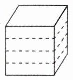 4. 如右图,把一个棱长为4 cm的正方体分成四个完全相同的小长方体,这四个小长方体的表面积之和比原正方体的表面积增加了( )$cm^{2}$。