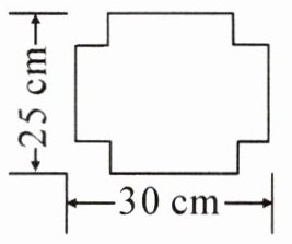 2. 右图是一块长方形铁皮,从四个角各切掉一个边长为5 cm的正方形后,做成一个无盖的盒子。这个盒子的表面积是多少平方厘米?