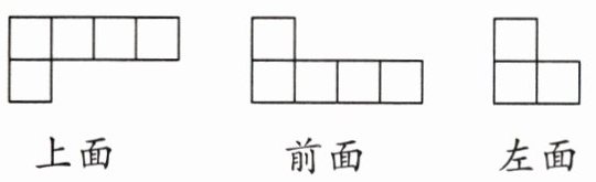 七、李星用几个1 cm³的小正方体木块摆了一个物体。下面是从不同方向看到的图形。你知道这个物体的体积是多少立方厘米吗?
