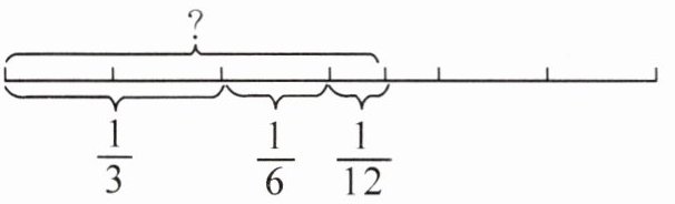 1. $\frac{1}{8} + \frac{1}{3} + \frac{1}{12} = \frac{13}{24}$ 2. $1 - \frac{13}{24} = \frac{11}{24}$