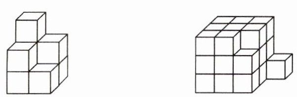 三、下面的物体都是用1 cm³的小正方体摆成的,它们的体积是多少立方厘米?