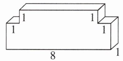 2. 有一个长8 cm、宽1 cm、高3 cm的长方体木块,在它的左右两角各切掉一个棱长为1 cm的正方体(如图),剩余部分的体积是多少立方厘米?